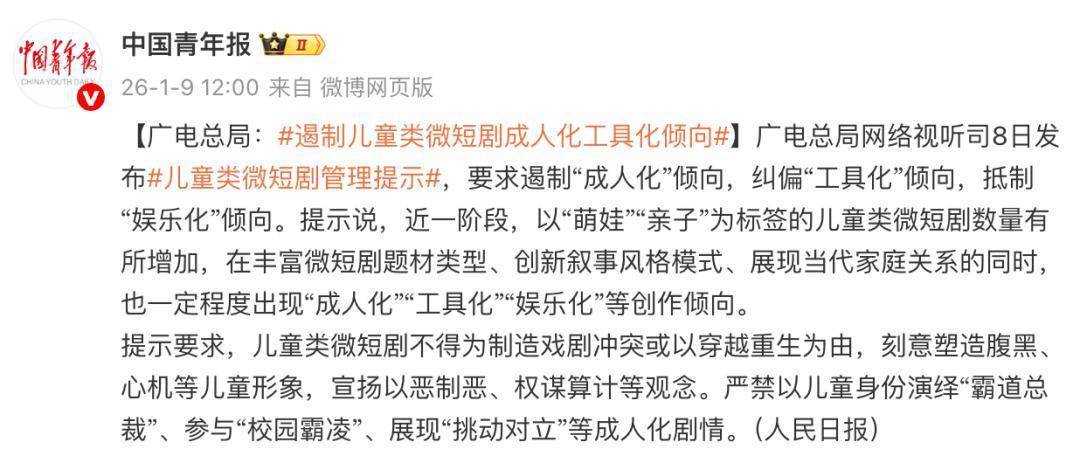中国网络文艺知识产权纠纷人民调解委员会调解员、中国执业律师缪蒙京告诉记者,从法律视角审视,该剧已明确触碰红线:其内容违反未成年人保护法及《未成年人节目管理规定》中严禁渲染未成年人成人化情感的规定,也直接违背了广电总局关于儿童不得出演成人化剧情的要求。行政层面,下架、罚款等处罚是必然结果。